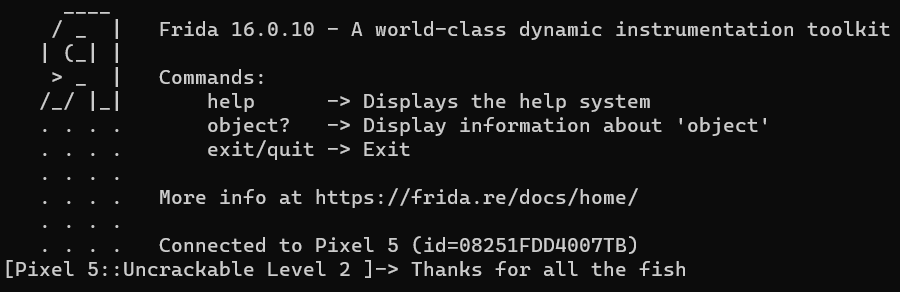 frida -U -f owasp.mstg.uncrackable2 -l bypass.js